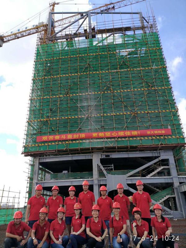 2017年6月24日,由我司承接的集設計、制造與安裝于一體的紅城湖商業(yè)廣場項目主結構順利封頂。