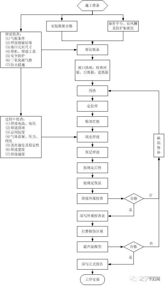 (5)焊縫的層間溫度應(yīng)始終控制在120~150℃之間,要求焊接過程具有較強(qiáng)連續(xù)性,施焊過程中出現(xiàn)修理缺陷、清潔焊道所需的停焊情況造成層間溫度下降,則必須用加熱工具進(jìn)行加熱,直到達(dá)到規(guī)定值后能再進(jìn)行焊接。