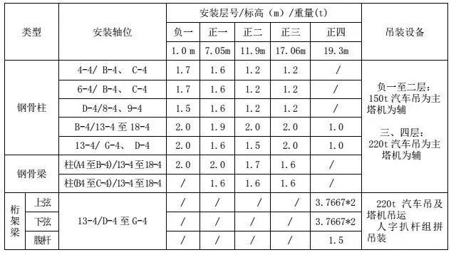 用于各層鋼構(gòu)件卸貨及吊裝的汽車吊選用詳見本文:表 4.2