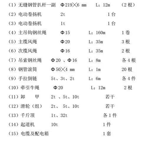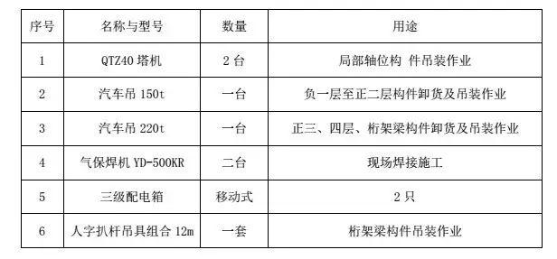 本次吊裝施工施工主要機具見下表:
