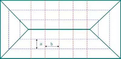 3.脊瓦數量: (a×2+b+c×2)÷0.7(脊瓦有效長度為2.4M/根)