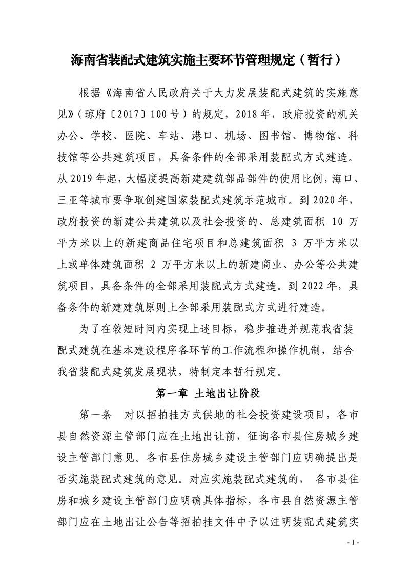 裝配式建筑實(shí)施主要環(huán)節(jié)管理暫行規(guī)定 瓊建科〔2019〕82號(hào)
