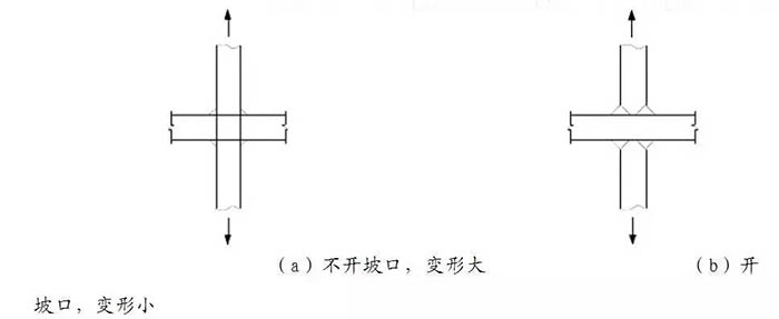 圖3:T形接頭板厚較大時采用開坡口角對接焊縫