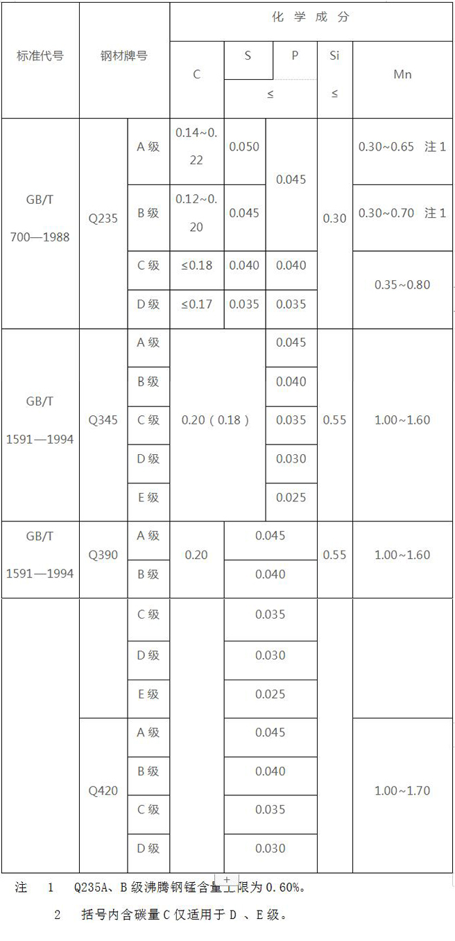 (1)按現(xiàn)行標(biāo)準(zhǔn)經(jīng)試驗證明其化學(xué)成分和機(jī)械性能符合GB/T700—1988中所列牌號的要求,但未查明其冶煉方法時,可按相應(yīng)的空氣轉(zhuǎn)爐沸騰鋼使用。