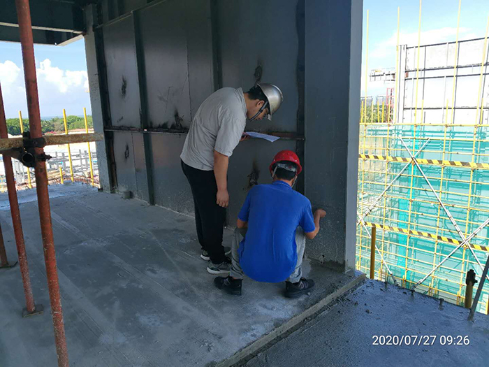 7月27日上午,瑞捷第三方檢測(cè)第三次到綠城藍(lán)灣小鎮(zhèn)香樟苑項(xiàng)目,針對(duì)現(xiàn)場(chǎng)的質(zhì)量風(fēng)險(xiǎn)及實(shí)測(cè)實(shí)量進(jìn)行過(guò)程評(píng)估,主要檢查現(xiàn)場(chǎng)鋼結(jié)構(gòu)鋼柱、鋼梁垂直度與對(duì)接焊縫,防腐厚度,表面觀(guān)感等環(huán)節(jié)。