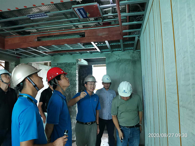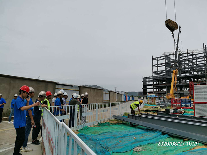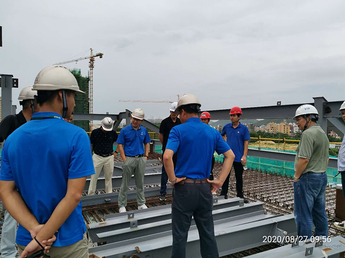 考察期間雙方針對樓棟的外墻陽臺防滲漏、梁柱及螺栓鉸接節(jié)點、BIM鋼梁腹板開洞系統(tǒng)、屋面排水系統(tǒng)等施工工藝進行了深入交流?疾靾F對綠城藍灣小鎮(zhèn)香樟苑的安裝進度、結構施工質(zhì)量、安全管控工作表示贊賞。同時要求后續(xù)施工加強管理,嚴把質(zhì)量關,把綠城品牌做精、做細,讓未來購房者受益。
