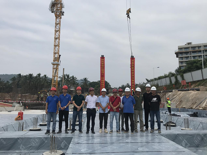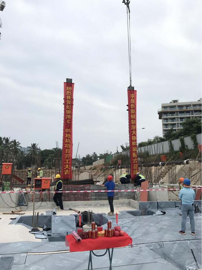 2020年11月3日上午9點18分。隨著鞭炮聲的響起,在北京城建地產(chǎn)副總經(jīng)理劉向、北京雙圓監(jiān)理總監(jiān)陳寶棟、北京城建道橋集團項目經(jīng)理李行等人的共同見證下,由海南浙大鋼構(gòu)有限公司承建的三亞紅塘灣旅游度假區(qū)C-05地塊項目一標(biāo)段鋼結(jié)構(gòu)工程首根鋼柱吊裝順利完成,三亞紅塘灣C-05鋼結(jié)構(gòu)工程正式進入施工階段。