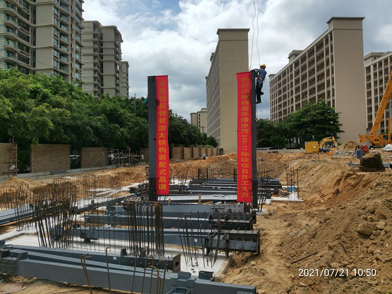 2021年7月21日上午10點30分,在甲方單位、總包單位領(lǐng)導(dǎo)的共同見證下。由浙大鋼構(gòu)承建的海南清水灣A04-11地塊項目首根鋼柱順利吊裝完成,項目正式進(jìn)入鋼結(jié)構(gòu)主體施工階段。