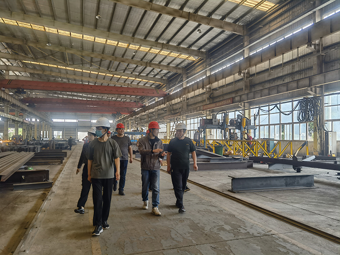 會后,考察團(tuán)來到加工生產(chǎn)基地參觀,林廠長表示嚴(yán)格按照國家規(guī)定加工生產(chǎn),并針對考察團(tuán)較關(guān)注的加工環(huán)境、技術(shù)、成本、裝配率、工期、鋼結(jié)構(gòu)和其他材料界面的處理工藝等內(nèi)容進(jìn)行詳細(xì)解答。