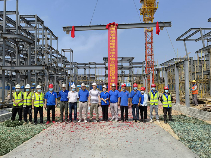 2022年4月25日10:08分,由海南浙大鋼構有限公司承建的繼綠城香樟苑、紫荊苑后又一個組團-海南綠城藍灣小鎮(zhèn)云棲居南區(qū)鋼結構裝配式住宅項目順利舉行封頂儀式,建設方綠城黃總、鄒總、郭工,江南總監(jiān)理袁總及我司商務總經理張秋琦、總工程師劉新華,項目經理周杰出席參加封頂儀式。