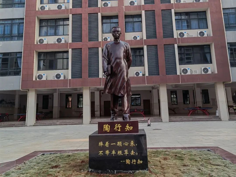 陸校長向嘉賓們一一介紹了雕塑的由來。"捧著一顆心來,不帶半根草去",是平民教育的踐行者陶行知先生的教育理念。“人·愛·創(chuàng)新”是北師大精神和文化的高度概括,蘊含了北師海附辦學(xué)5年所凝結(jié)形成的精神內(nèi)核,是全體北師海附人追求真理、矢志創(chuàng)新的真實寫照。他強調(diào),全校教師要堅定“五育并舉,立德樹人”的育人目標(biāo),以陶行知先生為榜樣,以校風(fēng)校訓(xùn)為崇高指引,不斷為民族育英才。