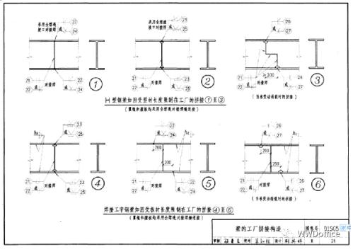 3、梁上附件不允許焊接在拼縫位置,要求錯(cuò)縫不應(yīng)小于100mm;如滿足不了,則在焊接 附件前要對(duì)主件拼縫進(jìn)行NDE檢查。4、梁長度不大于15m,拼縫只允許在梁兩端1/3處且只允許各有1條;梁長度在15m~35m, 翼緣板與腹板允許各有三條拼縫,但絕對(duì)不允許在梁中間及中間左右各1m范圍內(nèi)有拼縫。