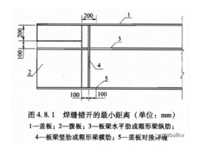 8.2.2 焊接H型鋼的翼緣板拼接縫和腹板拼接縫錯(cuò)開的間距不宜小于200mm。翼緣板拼接長度不應(yīng)小于2倍翼緣板寬且不小于600mm;腹板拼接寬度不應(yīng)小于300mm,長度不應(yīng)小于600mm。