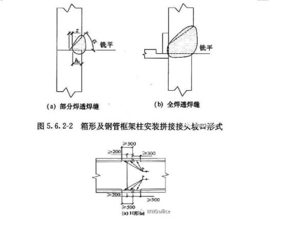 5.6.1 4 要求焊縫與母材等強(qiáng)和承受動(dòng)荷載的對(duì)接接頭,其縱橫兩方向的對(duì)接縫,宜采用T形交叉,交叉點(diǎn)的距離不宜小于200mm,且拼接料的長度和寬度不宜小于300mm,如有特殊要求,施工圖應(yīng)注明焊縫的位置。