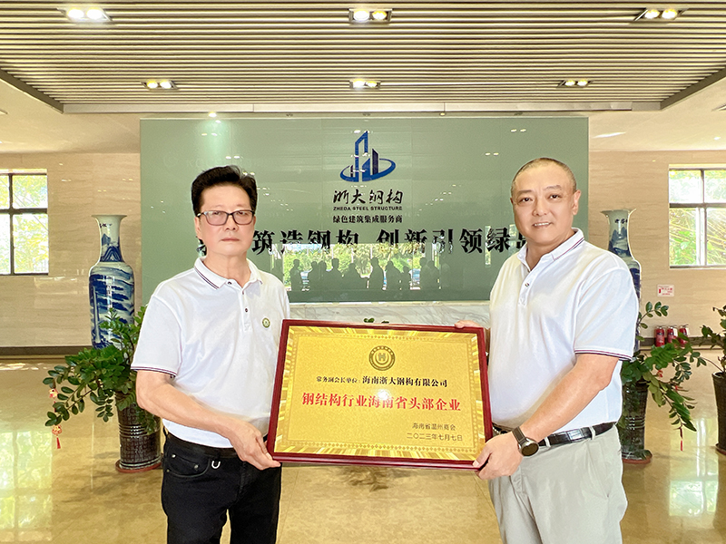 最后海南省溫州商會(huì)會(huì)長(zhǎng)劉漢博代表商會(huì)特授予我司“鋼結(jié)構(gòu)行業(yè)海南省頭部企業(yè)”稱號(hào),走訪活動(dòng)圓滿結(jié)束。對(duì)此稱號(hào)我司表示榮幸之至,在公司成立至今我司曾獲得中國(guó)建筑金屬結(jié)構(gòu)協(xié)會(huì)頒發(fā)的“中國(guó)鋼結(jié)構(gòu)金獎(jiǎng)”、“中國(guó)建筑金屬結(jié)構(gòu)協(xié)會(huì)科學(xué)技術(shù)一等獎(jiǎng)”等榮譽(yù),也是國(guó)家級(jí)裝配式建筑生產(chǎn)基地,這是肯定,也是激勵(lì),浙大鋼構(gòu)必將砥礪前行,堅(jiān)持自身特色,抓住機(jī)遇,繼續(xù)穩(wěn)步、持續(xù)、健康的發(fā)展。