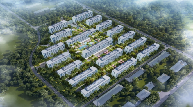 綠城藍(lán)灣小鎮(zhèn)——海韻曉風(fēng)項(xiàng)目位于海南省陵水縣新村鎮(zhèn),總用地面積53546.97㎡,總建筑面積111920㎡,具體為18棟7層~8層中高層住宅(1#-18#)及1棟1層公共配套會(huì)所組成,主要采用我司專利技術(shù)—隱式框架結(jié)構(gòu)體系,滿足國(guó)家裝配式建筑認(rèn)定標(biāo)準(zhǔn)。