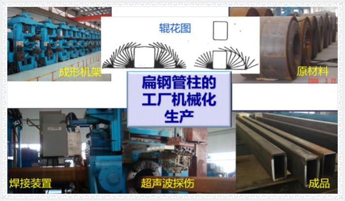扁鋼管柱的工廠機(jī)械化生產(chǎn)